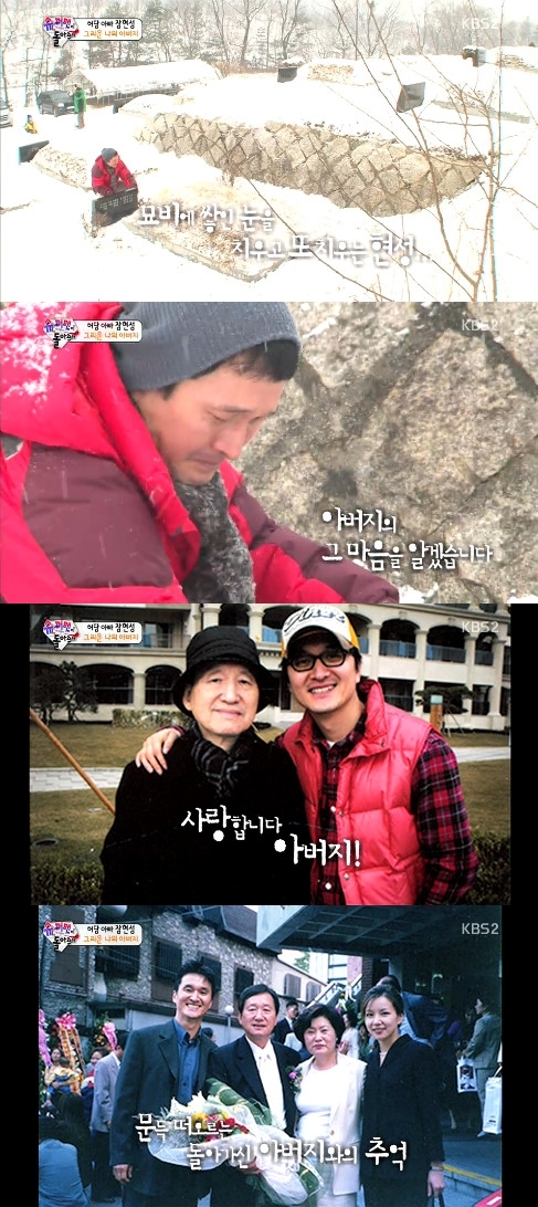장현성은 아버지 묘비에 쌓여가는 눈을 치우며 아버지에 대한 그리움으로 눈물을 흘렸다. 장현성은 인터뷰를 통해 “아버지는 늘 외로우셨던 것 같다. 가만히 있다가 아버지가 문득 생각이 날 때가 있다”고 말하며 눈물을 보였다.