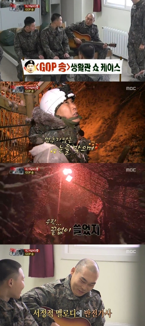 [OSEN=임승미 인턴기자] 가수 손진영이 반전 가사가 담긴 GOP송을 공개, 부대를 웃음바다로 만들었다.