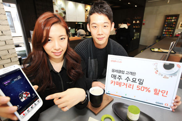 KT는 올레클럽 멤버들에게 매주 수요일마다 50% 커피할인을 제공한다.