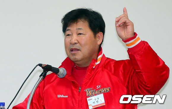 6일 오전 문학 야구장 내 위생교장에서 진행된 SK 와이번스 시무식에서 SK 와이번스 이만수 감독이 인사말을 하고 있다.