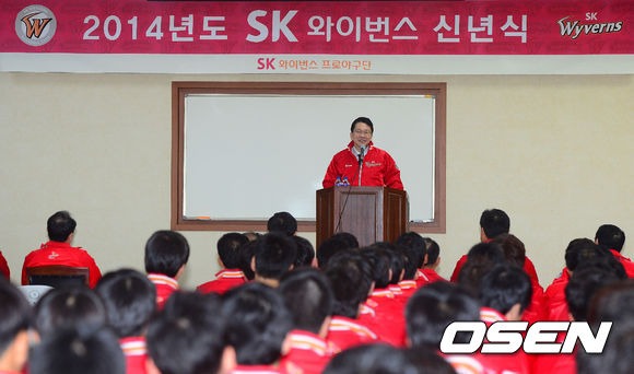 SK 와이번스 최창원 신임 구단주, 임원일 사장을 비롯한 전 직원과 이만수 감독 이하 선수단 전원이 참석해 2014년 새해 포부와 각오를 다지는 자리를 가졌다.