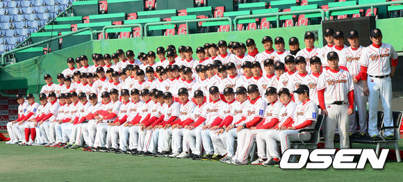 6일 오전 문학 야구장에서 진행된 SK 와이번스 시무식에서 SK 선수단이 포토타임을 갖고 있다.