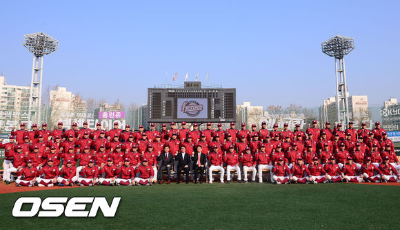 6일 오전 서울 목동구장에서 열린 넥센 히어로즈의 시무식 후 넥센 코칭스태프와 선수단이 포토타임을 갖고 있다.