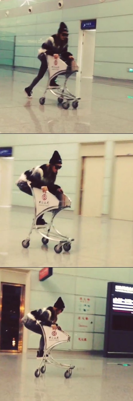그룹 미쓰에이의 지아가 공항 카트를 놀이 기구 삼아 타는 영상을 공개했다.