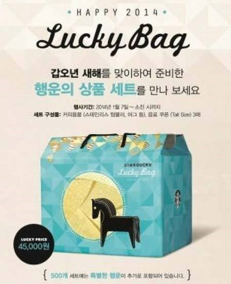 (주)스타벅스커피 코리아(대표 이석구)는 7일 전국 590여 매장에서 텀블러, 머그 등의 상품을 할인된 가격으로 구성한 럭키백 선물 세트를 출시한다고 밝혔다. 총 5000개를 소진 시까지 한정 판매할 예정이라고.