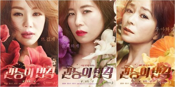 꽃보다 화려하게 만개한 절정의 40대, 뻔뻔하게 밝히고 화끈하게 즐기며 일도, 사랑도, 섹스도 여전히 뜨겁게 하고 싶은 세 친구들의 솔직한 이야이를 다룬 '관능의 법칙'이 개봉을 확정하며 주연배우들의 3색 포스터를 공개한 것.
