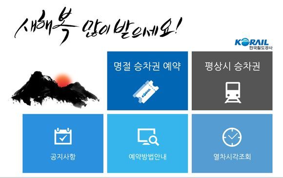 코레일은 7일 오전 6시부터 설날 기차표 인터넷 예매를 개시했다. 인터넷을 통한 이번 설날 기차표 예매 대상은 오는 1월 29일부터 2월 2일까지의 승차권이다. 1인당 최대 12매(회당 6매 이내)까지 가능하며, 오후 6시까지 진행된다.