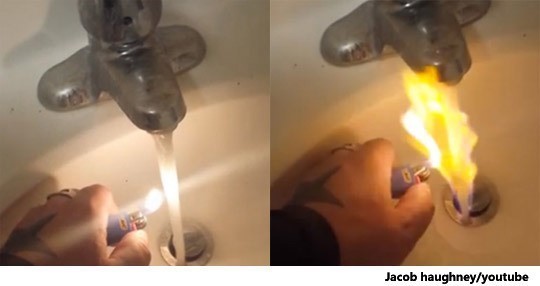 이 남성의 집이 불타는 수도꼭지가 된 이유는 무엇일까. 남자가 살고 있는 지역 인근에 석유 및 가스 채굴을 위한 공사 현장이 있기 때문으로 추측하고 있다. 이 남자는 오랜 기간 이 수돗물로 세수와 양치를 해왔다 밝혔다.