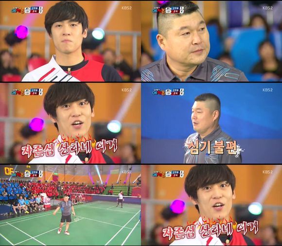 이날 21점 단세트 3경기를 진행해 누적 점수가 높은 팀이 우승하는 경기에서 두 사람은 각 팀의 첫번째주자로 경기를 시작했다. 존박은 네트 앞 드롭을 사용해 계속해서 강호동을 골탕먹였고, 강호동은 언짢은 듯한(?) 표정을 지었다.
