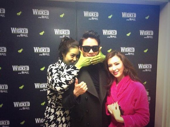 김준수는 지난 8일 오후 자신의 트위터를 통해 "최고의 두 여배우와 함께한 ‘위키드’. 내 귀가 참 즐거웠다. 두 배우와 대기실에 10분 정도 같이 있었을 뿐인데 두 배우 에너지에 정신이 혼미했다. 자내가 에메랄드 시티에 갔으니 이제 두 분이 지욱이네 하숙집에 올 차례다"라는 글과 함께 사진한 장을 게재했다.