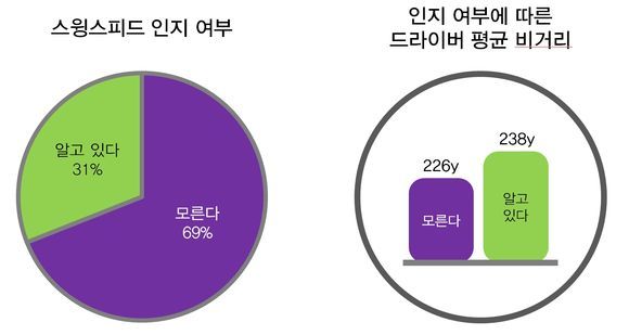 그러나 스윙스피드를 모르는 골퍼들은 ①브랜드 29.3% ② 성능(비거리, 스핀량) 29.1% ③타구감 24.3% 순으로 나타났다. 본인의 스윙스피드를 모르는 골퍼들이 브랜드를 더 중요시 하는 것을 알 수 있다.