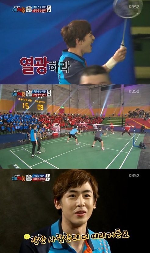 아이돌그룹 2PM의 멤버 닉쿤이 뛰어난 배드민턴 실력을 과시해 눈길을 끌었다.