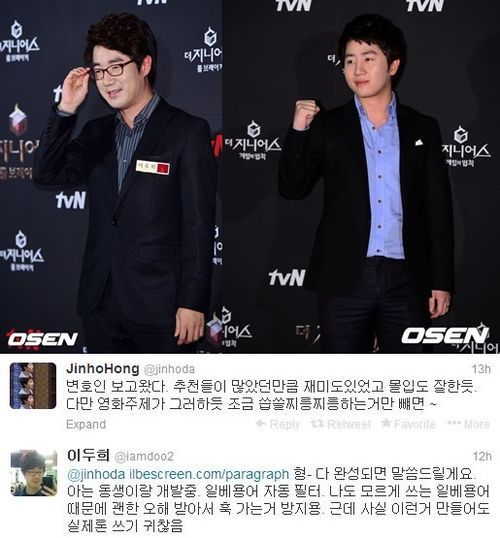 앞서 이날 홍진호는 트위터에 “’변호인’ 보고 왔다. 추천들이 많았던 만큼 재미도 있었고, 몰입도 잘한 듯. 다만 영화 주제가 그러하듯 조금 씁쓸찌릉찌릉한 것만 빼면”이라는 글을 게재했다.