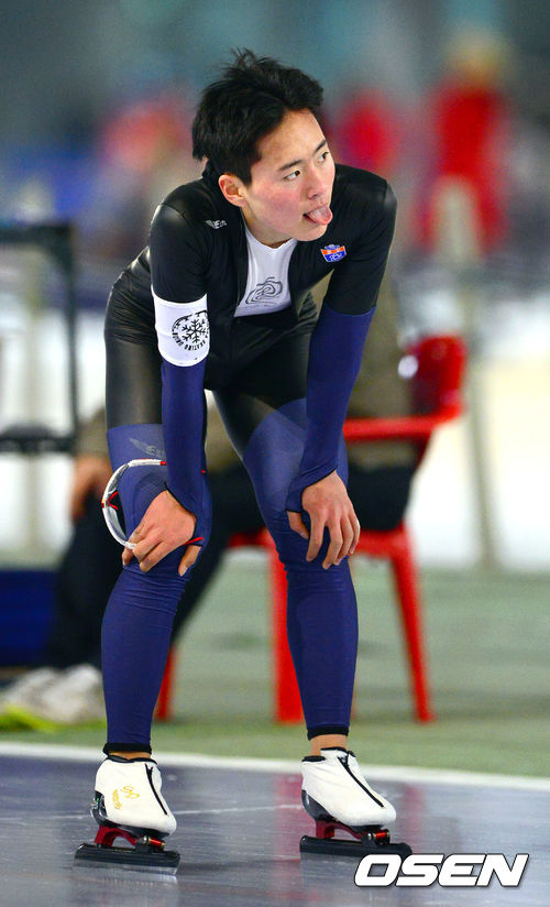 8일 오후 서울시 노원구 태릉국제스케이트장에서 열린 '회장배 전국 남녀 스피드 스케이팅 대회' 남자부 남자고등부 5000m에서 박성광이 레이스를 마친후 힘든 표정을 짓고 있다.