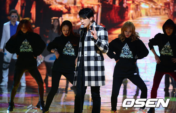 가수 비가 리허설을 하고 있다.