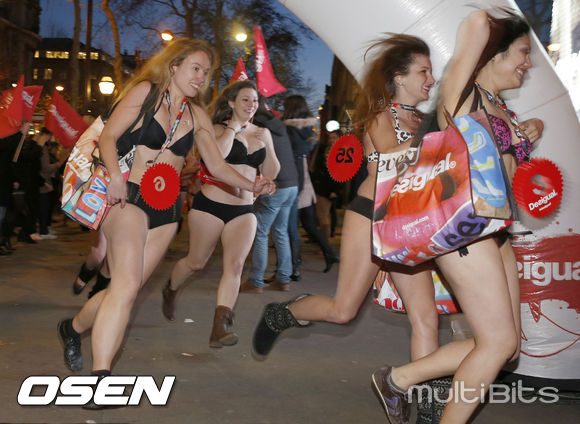 매장 오픈과 함께 속옷 차림의 남녀가 매장을 향하고 있다.