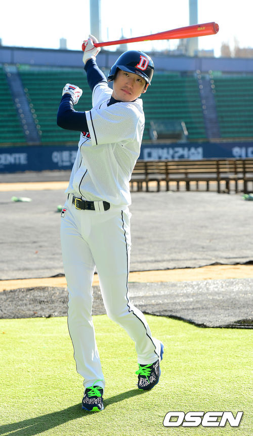 넥센에서 두산으로 트레이드 된 장민석이 포토타임을 갖고 있다.