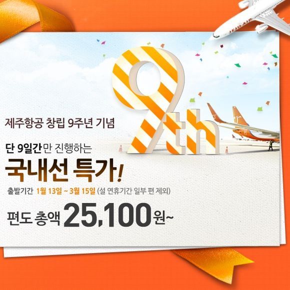 [OSEN=이슈팀]제주항공이 창립 9주년을 기념해 국내선 특가도 진행한다.
