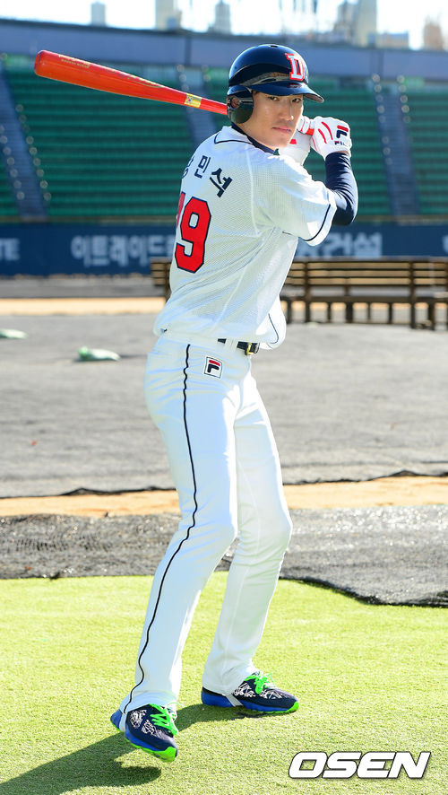 넥센에서 두산으로 트레이드 된 장민석이 포토타임을 갖고 있다.