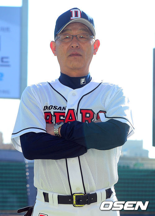 송일수 감독이 포토타임을 갖고 있다.