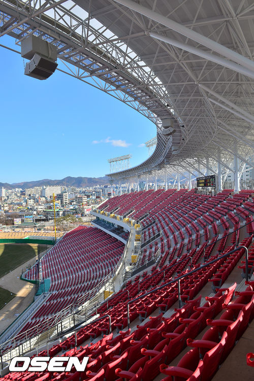 외관은 2만2천석(최대 3만석까지 증축가능) 야구장 답게 웅장하다. 엘리베이터를 타고 2층으로 올라가니 내야석이 드넓고 완만하게 그라운드를 향해 있다. 다른 구장보다 관중석이 그라운드에 가깝다. 홈플레이트에서 관중석까지 18m에 불과하다. 박진감 넘치는 플레이를 볼 수 있다. 의자를 지그재그로 설치해 앞 사람 머리에 시야가 가리는 일이 없도록 했다.