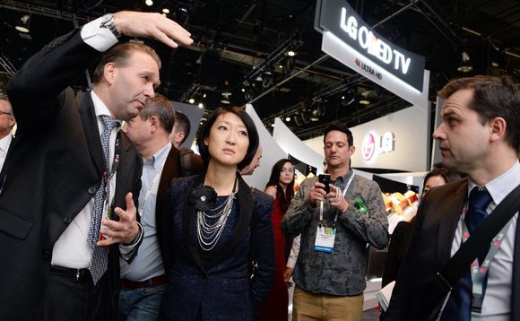 LG전자 전시장을 체험한 펠르랭 장관은 105형 곡면 울트라HD TV를 보며 "화질이 믿을 수 없을 만큼(incredible) 좋다"고 평했으며 LG 올레드 TV를 보고는 "깊고 진정한 블랙화면이 인상적이다(black is real black)" 며 "선명도와 심도가 뛰어나다"고 말했다.