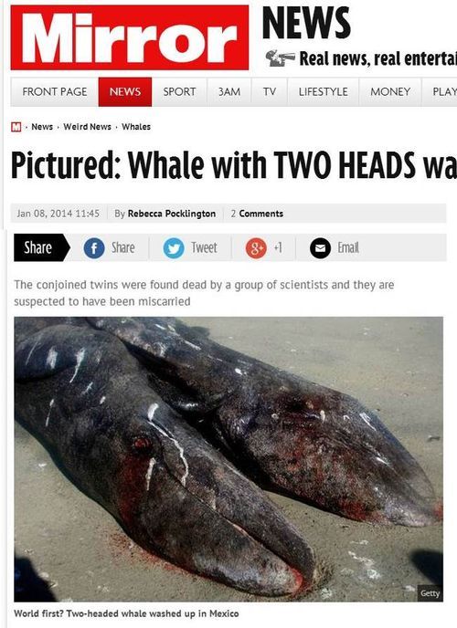 [OSEN=이슈팀]멕시코 해안에서 샴쌍둥이 쇠고래가 사체로 발견돼 해외 및 국내에서 화제를 모으고 있다.