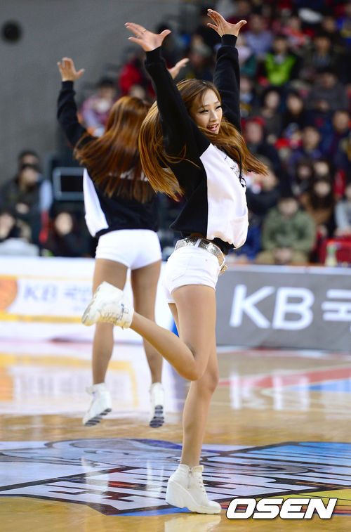 전자랜드 치어리더가 화려한 공연을 펼치고 있다.