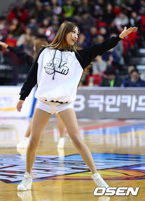 전자랜드 치어리더가 화려한 공연을 펼치고 있다.