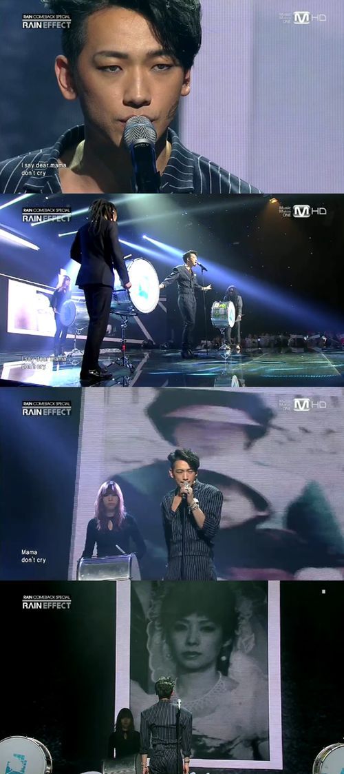 이날 비는 어머니에 대한 끝없는 사랑과 그리움을 담은 '디어 마마 돈 크라이(Dear Mama Don’t Cry) 무대를 선보였다.