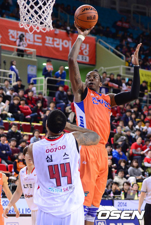3쿼터 전자랜드 로드가 점프슛을 시도하고 있다.