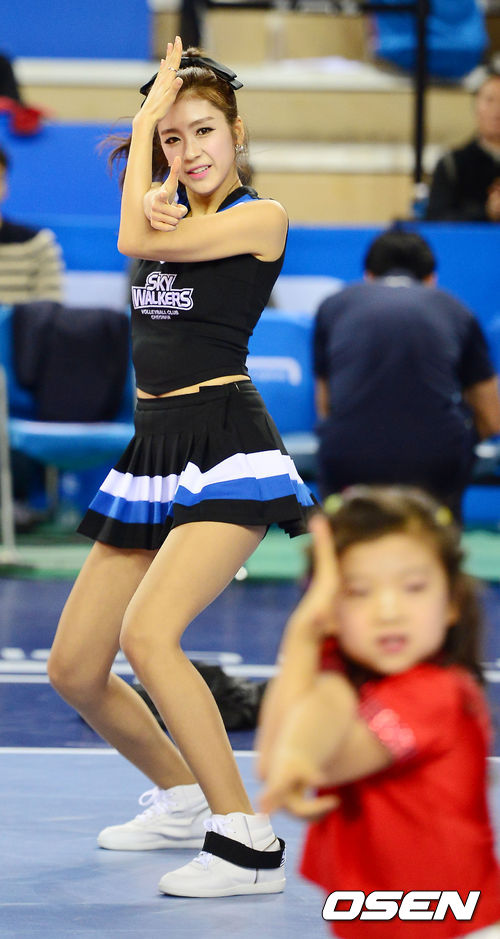 9일 오후 천안 유관순체육관에서 열린 '2013-2014 NH농협 V리그' 남자부 현대캐피탈과 LIG손해보험의 경기, 현대캐피탈 치어리더 김연정이 코트 위에서 화려한 안무를 선보이고 있다.