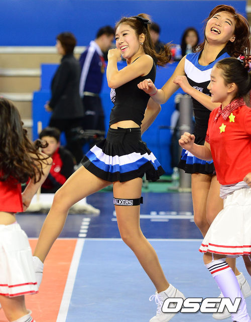 9일 오후 천안 유관순체육관에서 열린 '2013-2014 NH농협 V리그' 남자부 현대캐피탈과 LIG손해보험의 경기, 현대캐피탈 치어리더 김연정이 코트 위에서 화려한 안무를 선보이고 있다.