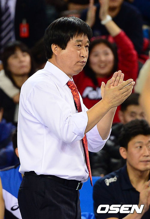 4세트 듀스 상태에서 현대캐피탈 김호철 감독이 박수를 보내고 있다. / rumi@osen.co.kr