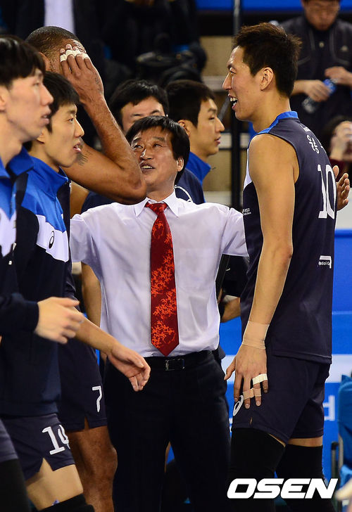 경기를 마치고 현대캐피탈 김호철 감독이 선수들을 격려하고 있다. / rumi@osen.co.kr