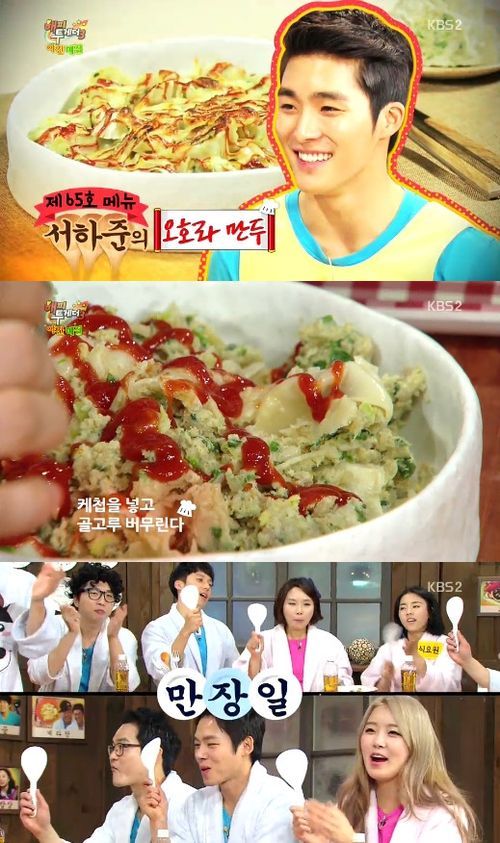서하준은 9일 방송된 KBS 2TV 예능프로그램 '해피투게더3' 야간매점에서 만두 스파게티인 ‘오호라 만두’를 선보였다.