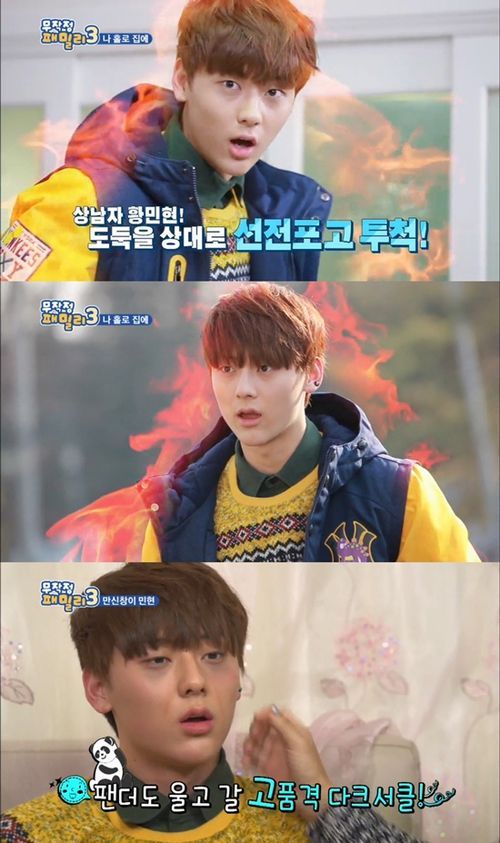 지난 7일 방송된 '무작정 패밀리 시즌3' 24회에서 민현은 겨울 여행을 떠난 유라의 집을 지키기 위해 홀로 고군분투 하며 '나 홀로 집에'의 케빈에 완벽하게 빙의했다. 이날 방송에서 민현은 자연스러운 부산 사투리와 함께 3일을 굶어 폭풍 '먹방(먹는 방송)'을 보여주며 코믹한 연기까지 완벽하게 소화해내며 존재감을 확실히 했다.