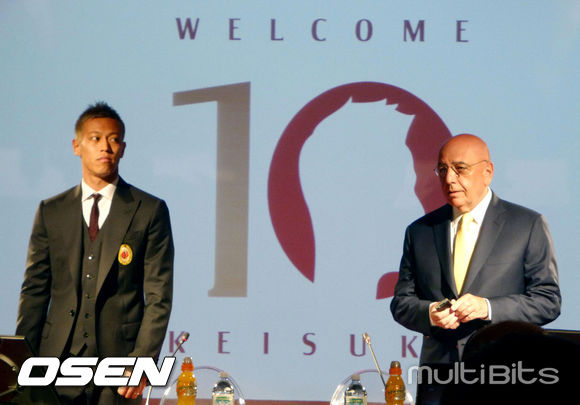 혼다는 지난 9일(이하 한국시간) 이탈리아 밀라노 산 시로 스타디움에서 AC밀란 입단식을 가졌다. 계약기간 3년 6개월로 오는 2017년 6월 30일까지이며 등번호는 꿈에 그리던 10번을 달았다.