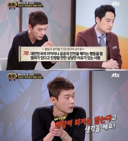 허지웅은 9일 방송된 JTBC ‘썰전’에서 병역기피로 입국금지 상태인 유승준에 대해 이야기했다.