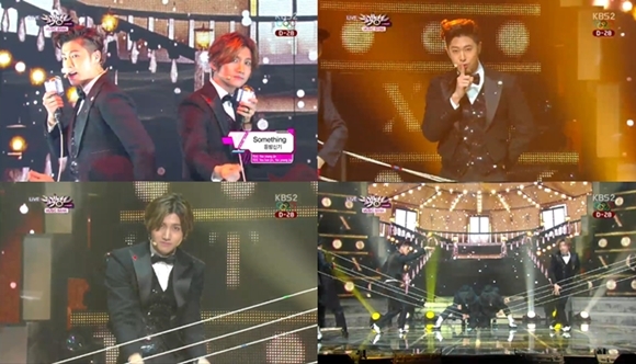 동방신기는 10일 오후 생방송으로 진행된 KBS 2TV '뮤직뱅크'에서 '섬씽(Something)' 무대를 꾸몄다.