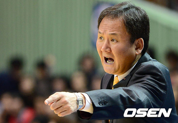 4쿼터 모비스 유재학 감독이 선수들에게 작전을 지시하고 있다.