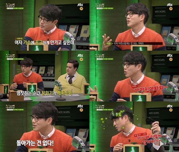 그는 이날 "남자들이 여자들의 가슴에 포근하게 안겨있고 싶어하는데 나는 그게 자연스럽게 안된다"라면서 "남자들이 관계를 할 때 여성들의 속옷을 자연스럽게 풀러야 분위기가 깨지지 않는데 안경도 그런 식이다"라고 말했다.
