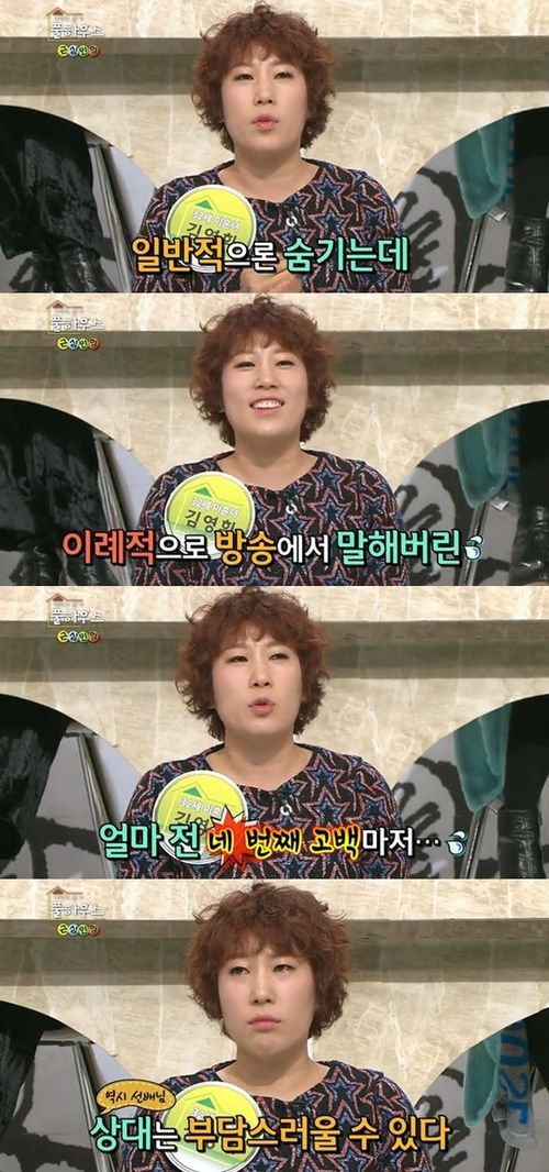 김영희는 지난 10일 방송된 KBS 2TV 예능프로그램 '가족의 품격 풀하우스'에서 "보통 짝사랑은 숨겨서 하는 건데, 어떻게 해볼라고 방송을 통해 공개적으로 했다"라고 임우일의 이야기를 꺼냈다.