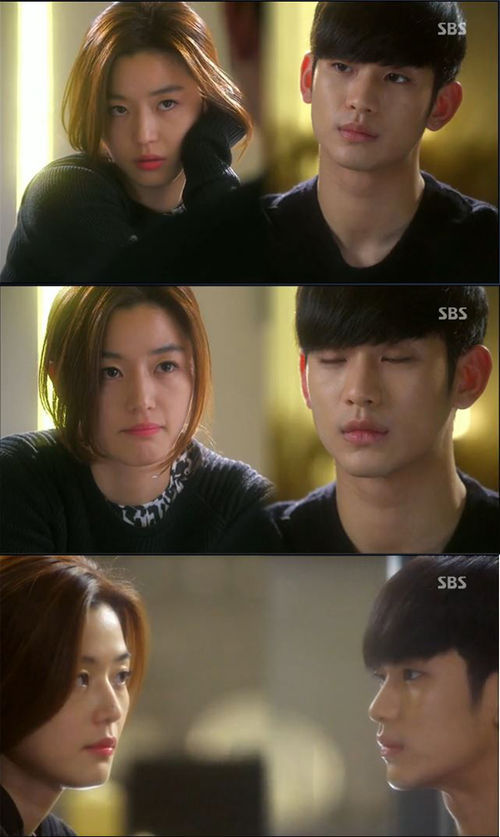 그러자 김수현은 참아오던 감정을 터뜨리며 전지현을 잡아당겨 키스를 나눴다.
