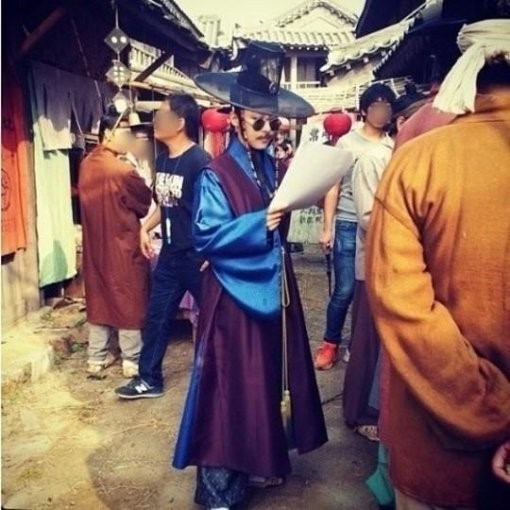사진 속에서 하지원은 콧수염을 붙이고 동그란 선글라스와 갓을 쓰고 대본을 보는 중이다. 배경은 조선시대를 방불케 하는 건물과 사람들이 있어 연화 촬영에 임하고 있음을 짐작할 수 있다.