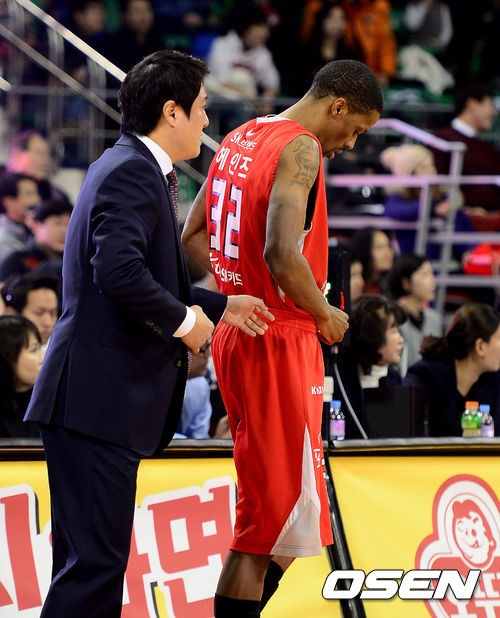 1쿼터 SK 문경은 감독이 교체 투입되는 헤인즈와 이야기를 나누고 있다.