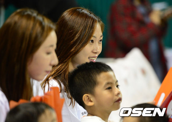 펜싱 국가대표 김지연이 남야주 샬롬의 집 다문화 가정 아이들과 경기를 관전하고 있다./ jpnews@osen.co.kr