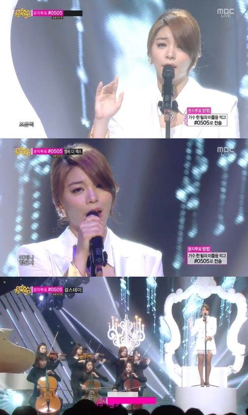 이날 하얀색의 깔끔한 의상을 입고 등장한 에일리는 스탠딩 마이크 앞에 서서 노래를 시작했다. 특유의 파워풀한 보컬과 애절한 가사, 섬세한 감정이 돋보여 풍성한 무대를 완성했다.