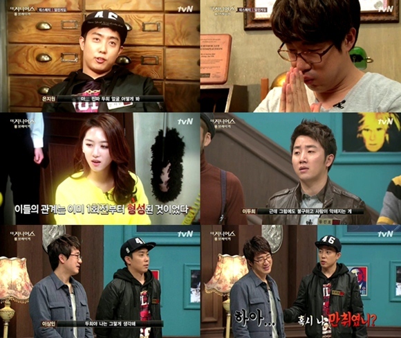 지난 11일 방송된 '더 지니어스2' 6회는 이게 절정에 치달은 방송이었다. 게임이 시작되기 전부터 그룹 룰라 출신의 프로듀서 이상민은 비방송인 홍진호-임요환-이두희가 사적으로 만남을 갖는다는 것을 전하며 "홍진호를 제거해야 한다"는 분위기를 조성했다. 자연스럽게 방송인들은 자연스럽게 연맹을 결성한채 게임을 시작했고, 결국 타깃이었던 비방송인 중 이두희가 탈락했다.