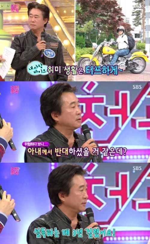 김병준은 12일 방송된 SBS 예능 프로그램 '도전천곡'에 출연해 "바이크를 즐겨 탄다"며 "아내를 설득하는데 3년이나 걸렸다. 반대가 있었다"고 말했다.